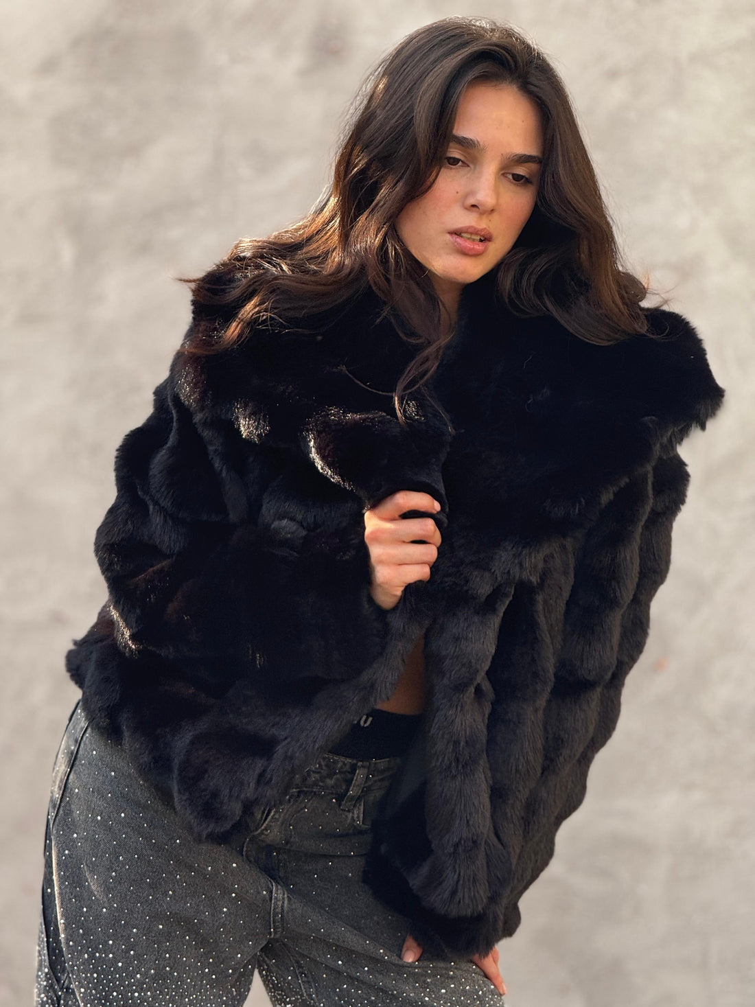 Feel the lux fur jacket in black