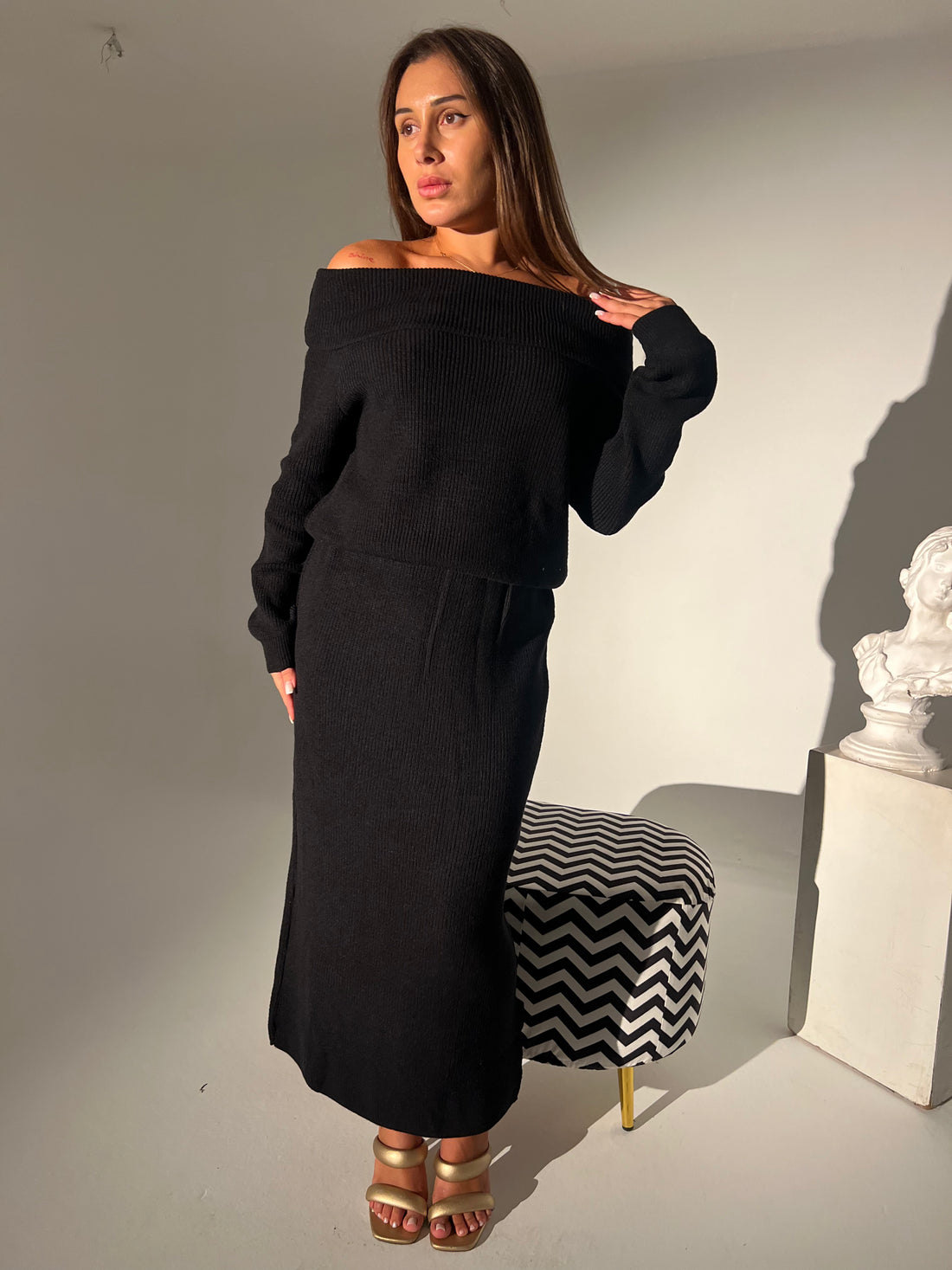 off shoulder top with long skirt