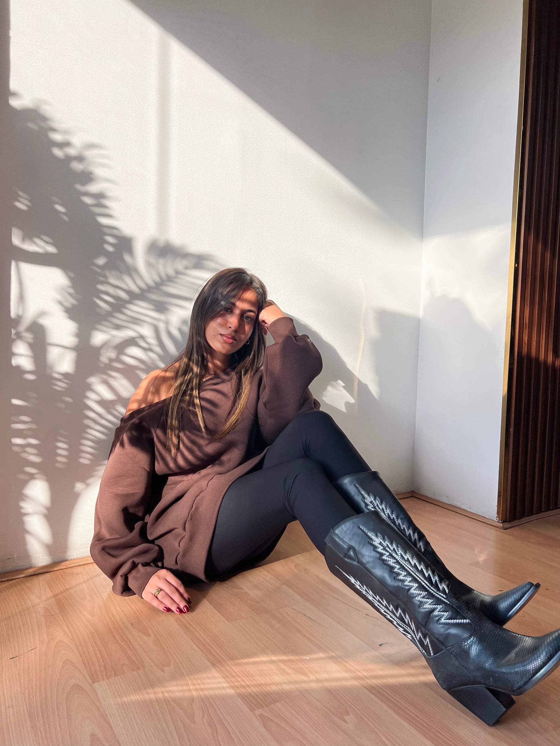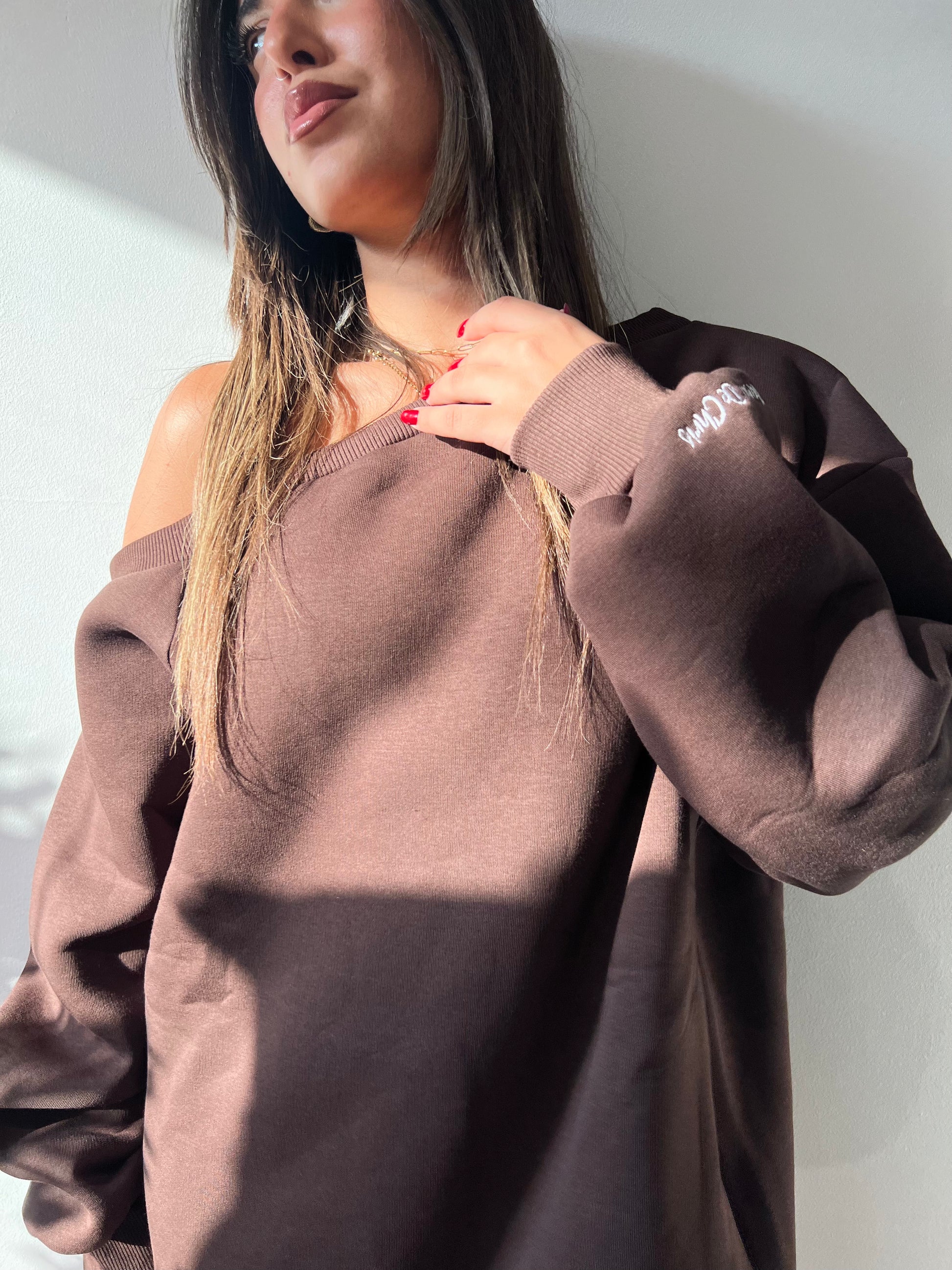 Hoodie Off Shoulder brown